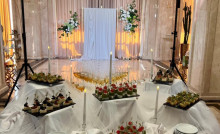 Уютный и классический зал, очаровывает выдержанным классическим стилем, создающим изысканную атмосферой торжества.